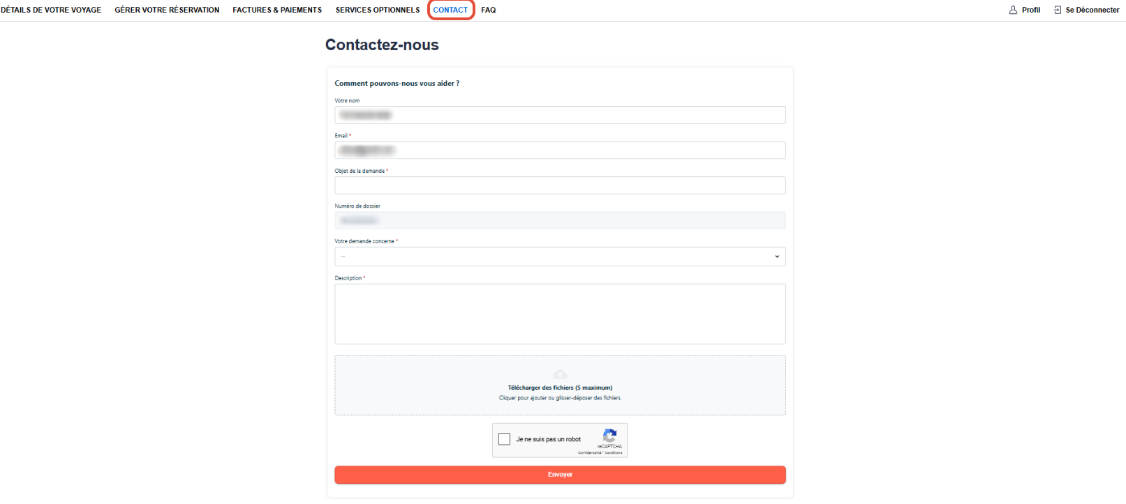 Si toutefois vous ne trouvez pas la réponse à votre question et afin de faciliter le traitement de votre demande, nous vous invitons à nous écrire en complétant notre formulaire de contact accessible depuis l'onglet "Nous contacter" sur votre espace client FRAM où vous retrouvez les documents et informations utiles concernant votre séjour à venir.