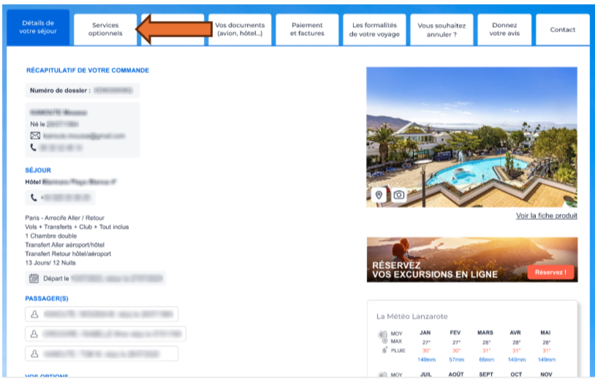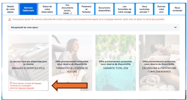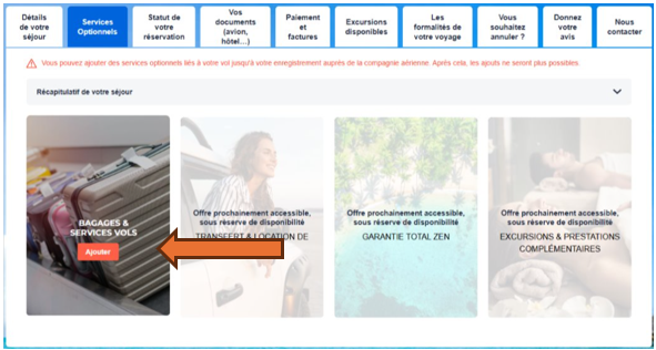 Pour ajouter des bagages en soute supplémentaires dans le cadre d'une réservation déjà validée auprès de nos services, vous disposez dorénavant de l’onglet « Services optionnels » sur votre espace client.